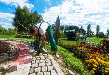 Pflasterarbeiten, Erdarbeiten und Grünflächenpflege nach Glasfaser- oder Tiefbauprojekten.